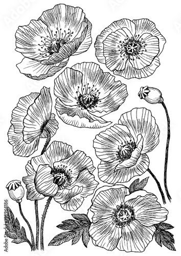 Draw the poppies onto your watercolor paper, with some leaves and buds. #poppy #flower #poppy flower #leave me alone #plant #plants #petals #red #botanical #herbarium #leave #drawing #art #illustration #artist. Poppy flowers in their vivid red and orange hues look like they are calling out to artists to pay step 2 so instead of painting on the original drawing, i printed out the scanned drawing directly for more insight into the process of adding colored pencils to watercolor, watch my maple leaf video tutorial. Watercolor flowers flower sketches flower art silk painting poppies poppy coloring page poppies tattoo embroidery cards poppy drawing. Collection set of poppy flower and leaves drawing illustration.